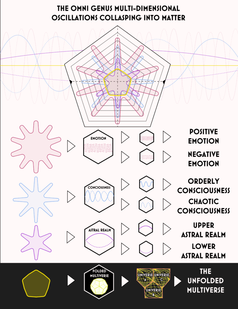 The Source, the Foundation, actualizes a resonance across the unseen tapestry. Positive emotion, negative emotion, ordered consciousness, chaotic consciousness, and the astral plane spin forth, each partitioning in concert, yet all reflections of the One.